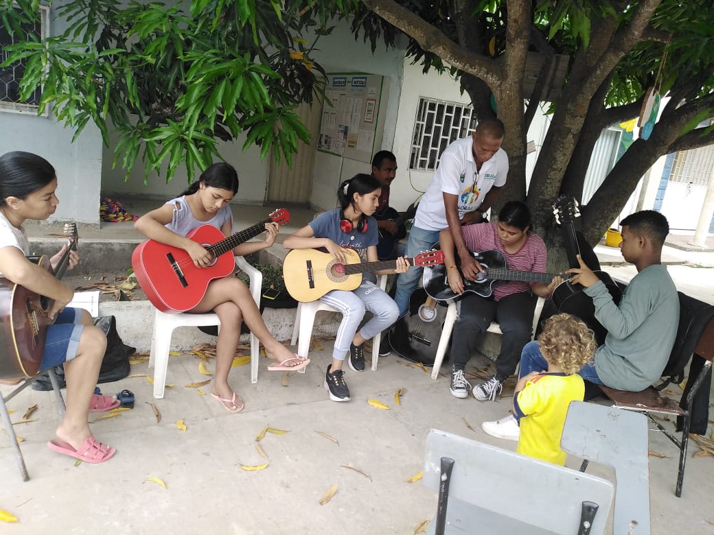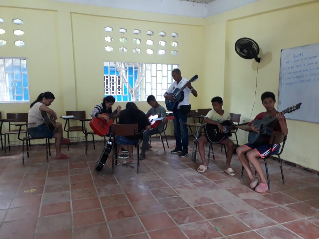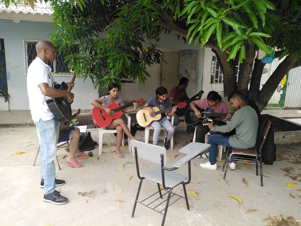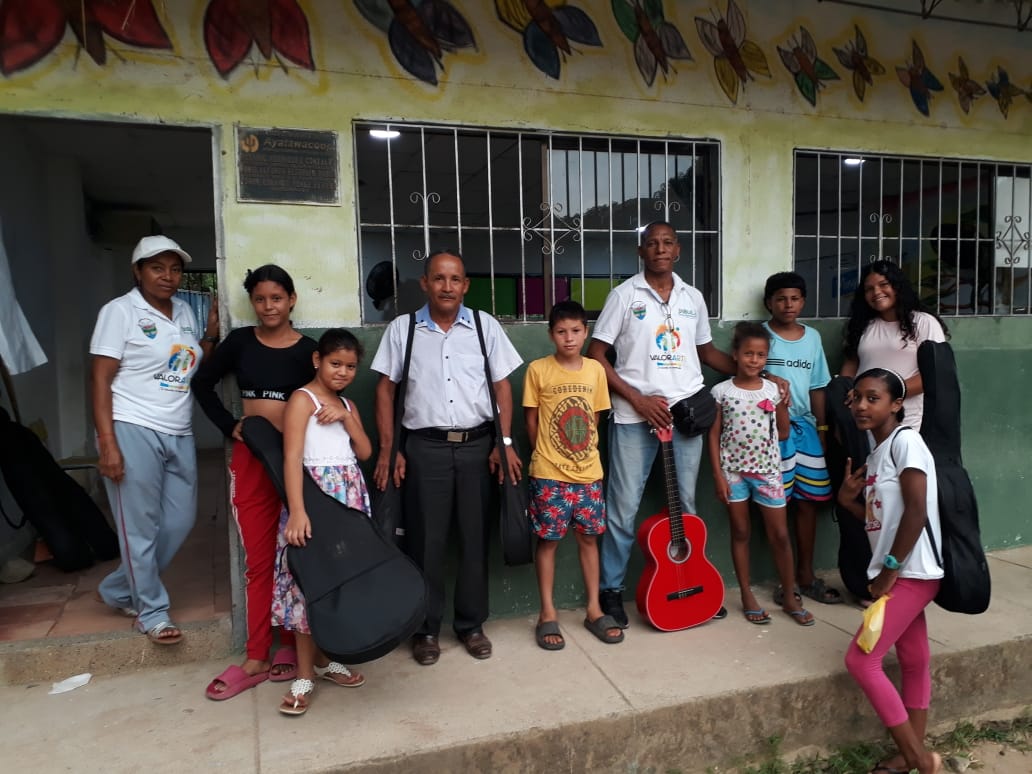 “para mí, es de gran satisfacción poder compartir con mis estudiantes desde lo que soy, estoy haciendo un Diplomado de Arte y Paz muy enriquecedor y he podido compartir ese aprendizaje con los muchachos. Me llena el corazón hacer parte de sus vidas, de su formación, ver como los niños y jóvenes captan, reciben y colocan en práctica en sus ensayos con el instrumento lo aprendido, dando muestra de su evolución. Agradezco a Dios, porque me ha permitido hacer parte de la familia Valorarte, donde implementamos los valores con el arte, valores como la paz, la alegría, el amor, el respeto, etc, en combinación con el arte y la cultura, este proyecto lo trabajamos de la mano con la alcaldía municipal de Dibulla, quienes le apuestan al futuro de los jóvenes”,