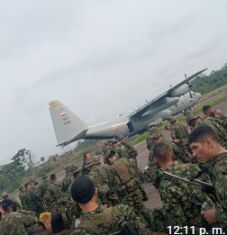 Alejandro, cerca del avión Hércules, listo para abordar.