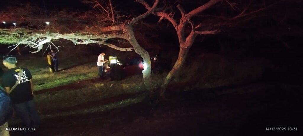 El inicio de la noche de este domingo 14 de diciembre, no fue la excepción. Cuando la oscuridad invadió con su negro manto el asfalto de la carretera Troncal del Caribe, un automóvil Chevrolet Optra de placas BMB-977 de Bogotá, se salió de la vía y colisionó contra un árbol de trupillo, destruyendo su parte frontal, dejando como saldo tres personas con heridas de consideración.