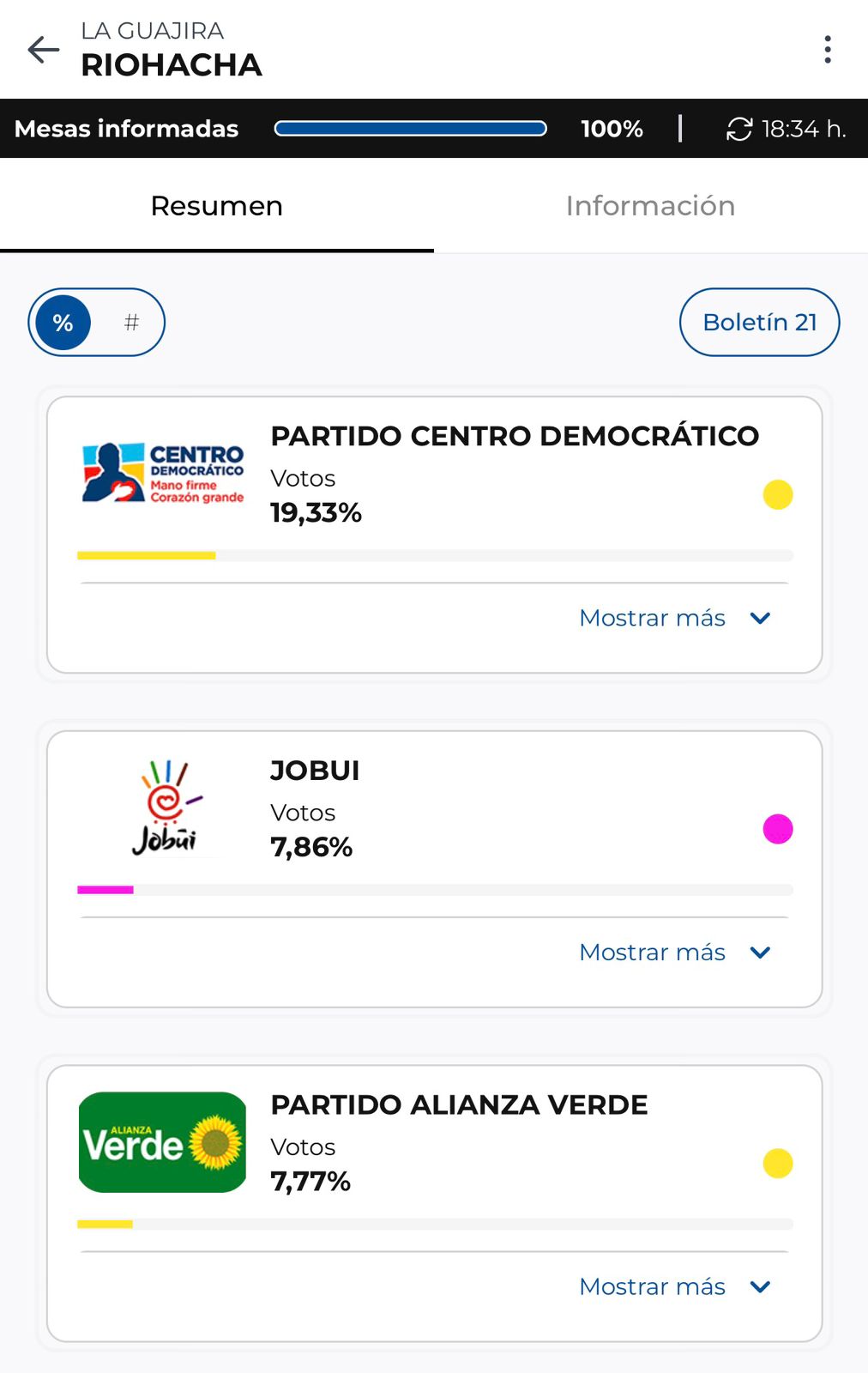 RESULTADOS ELECTORALES POR PARTIDO EN RIOHACHA
